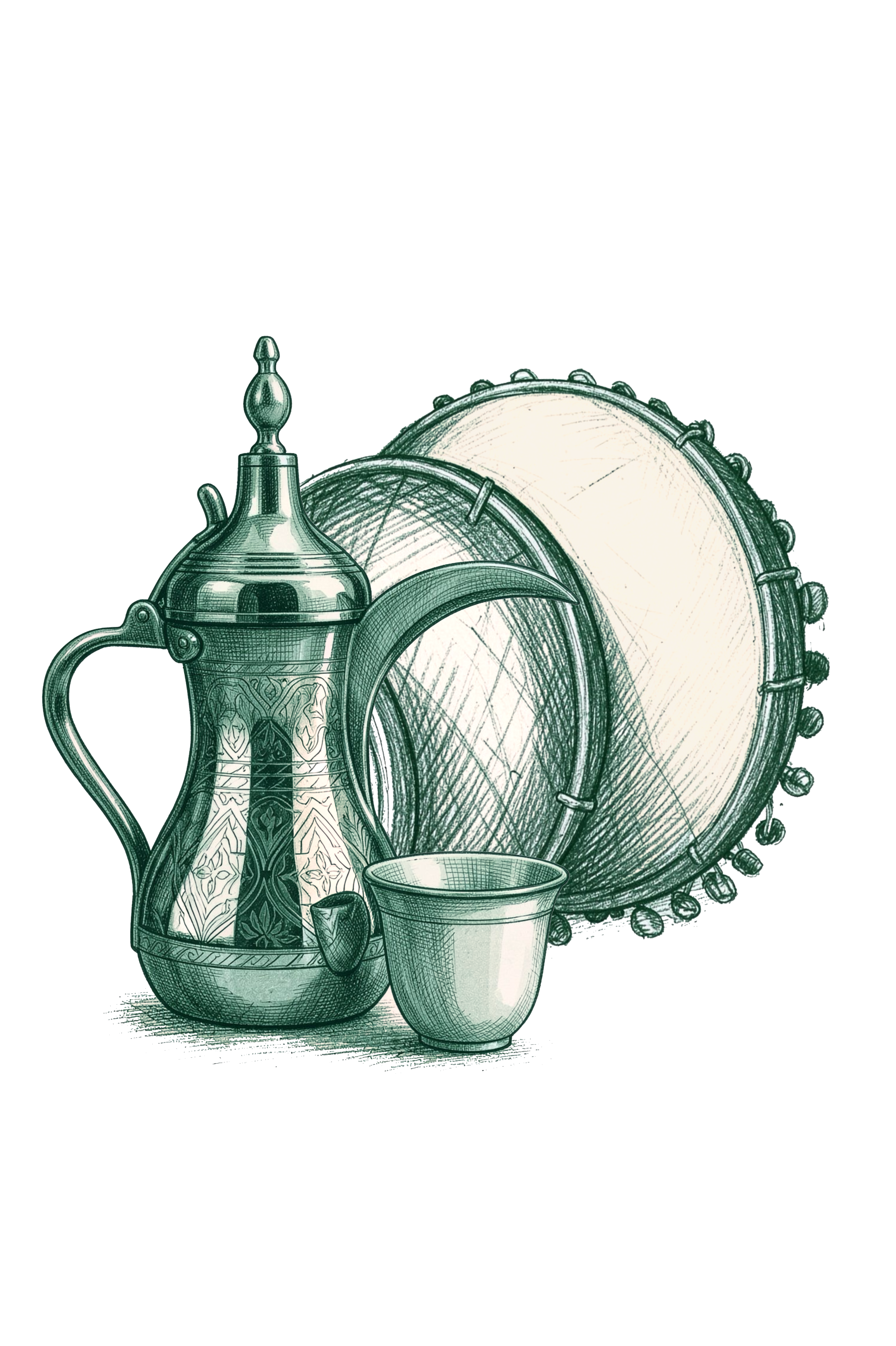 She works between painting and photography, drawing equally from the desert landscapes of her childhood and the quiet domestic objects that pass through every life: a copper dallah, an unfolded date, a square of afternoon light on a wall. Each work is small evidence that the ordinary is, in fact, sacred.